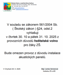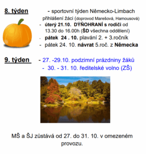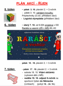 Plán akcí na měsíc říjen a vyhlášení ředitelského volna