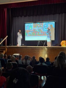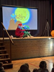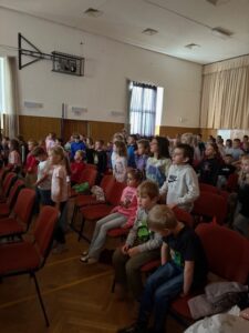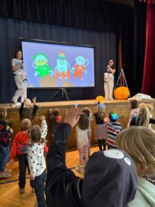 V úterý 7. 10. za námi přijeli RARÁŠCI. Veselé písničky, interaktivní představení na téma vesmíru, legrace a zajímavé informace – to vše děti ze školky i naše školáky velice bavilo. Věříme, že pohyb a vzájemné komunikace účinkujících s publikem pomohlo k získání povědomí o planetách, Slunci, historii objevování vesmíru apod. www.rarasci.com.