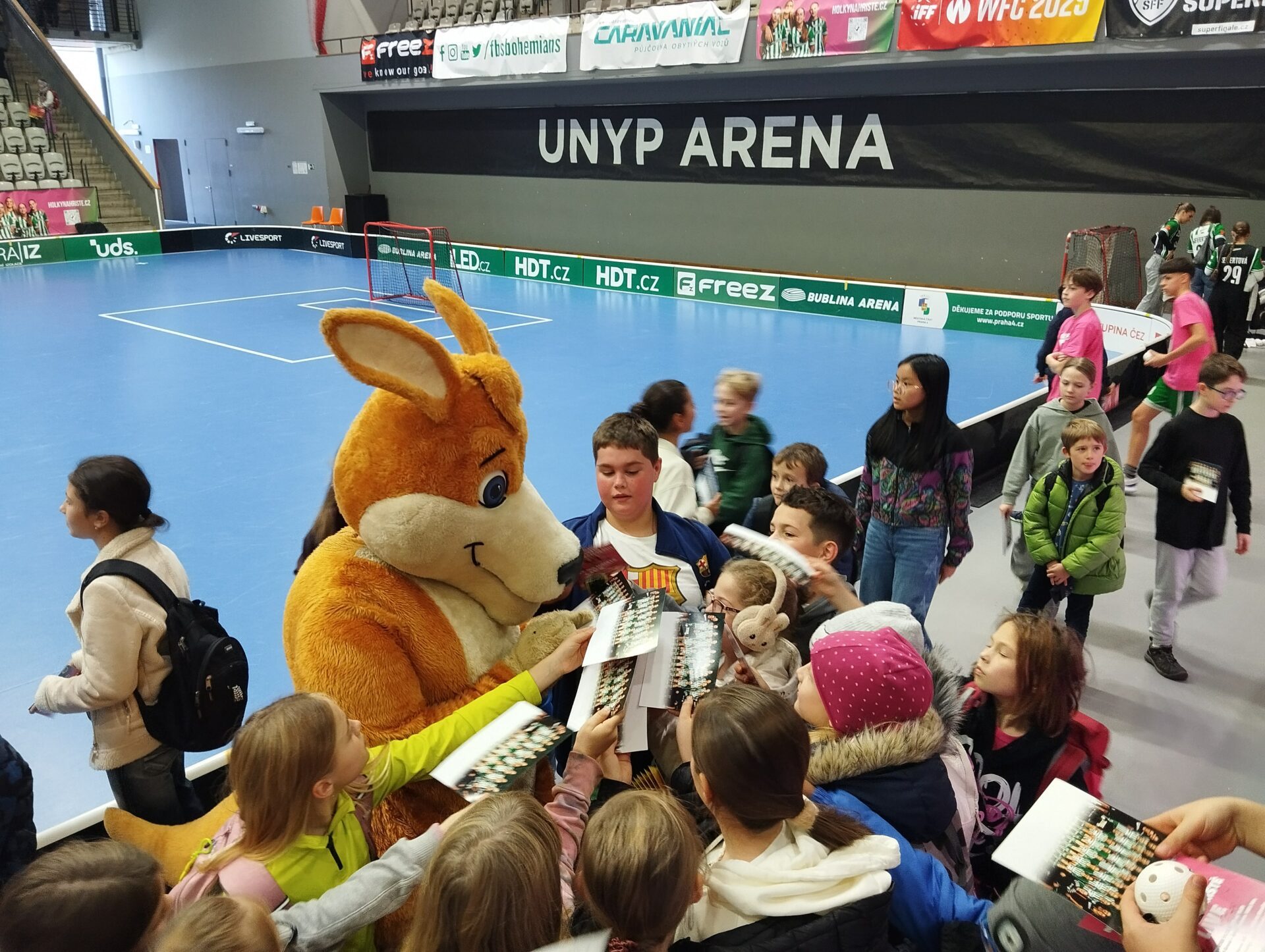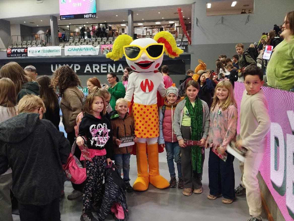 SCHOOLMACH 2025 14. 11. 2025 Marešová Většinou děvčata z 5. – 2. ročníku fandila 12.11. v Praze na utkání FbŠ Bohemians vs. FAT PIPE FLORBAL CHODOV. Zažili jsme florbalové utkání žen, včetně úžasné atmosféry, autogramiády, maskotů ( bylo přes 1 000 diváků).