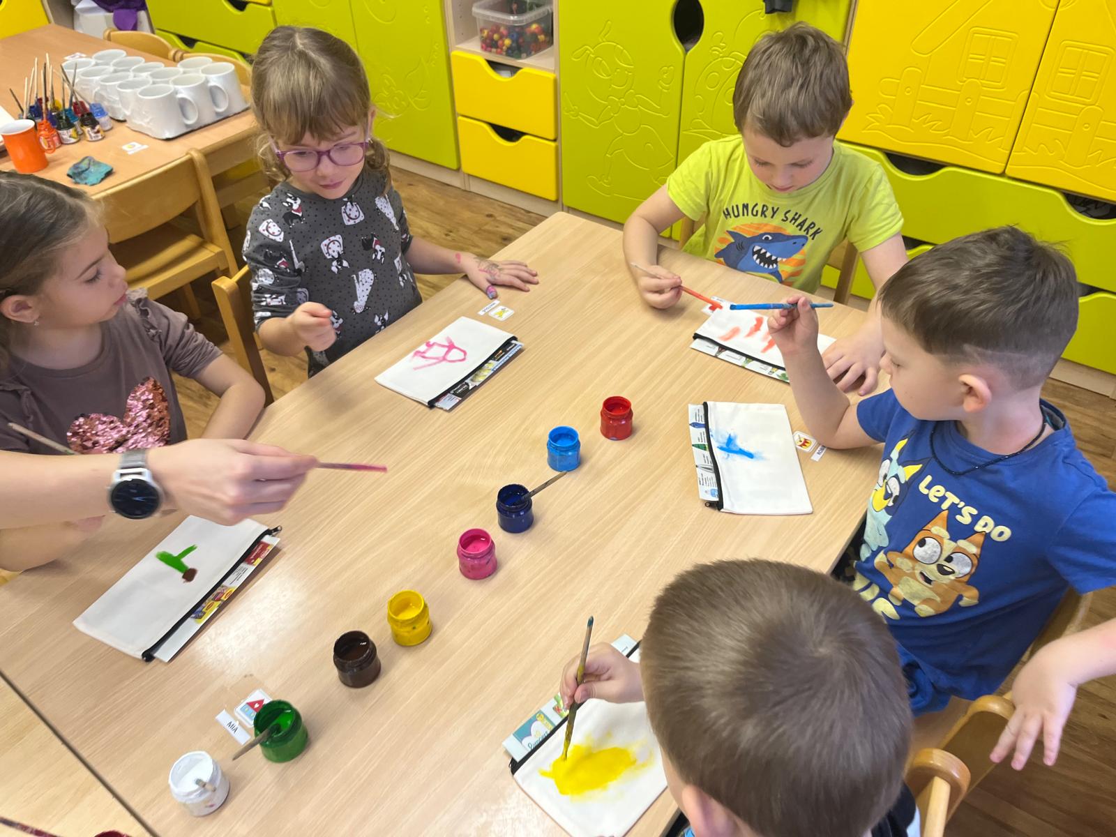 Děti si mohly vyrobit zajímavé výrobky podle své třídy. Nejmenší děti ze třídy Berušek malovaly na hrníčky, zatímco Sluníčka a Sovičky si barvily látkové taštičky.