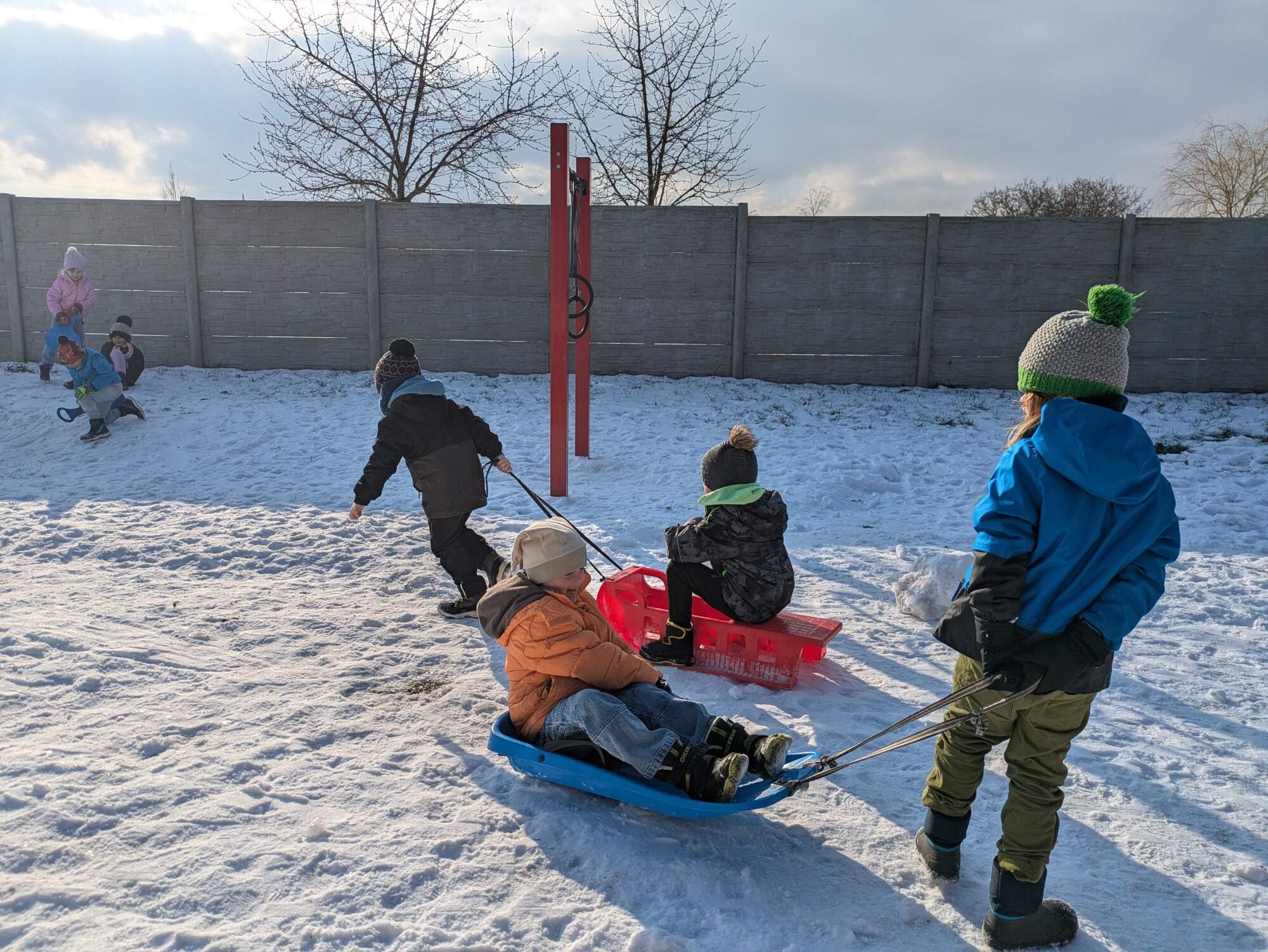 Ze všeho nejraději však pobýváme společně venku, jak na školní zahradě, tak i v okolí školy (na procházkách či dětských a sportovních hřištích). Snažíme se děti vést k pravidelnému pohybu a zdokonalování sportovních znalostí, často zapojujeme do činností protahovací a relaxační cvičení. Děti házejí míčem nebo tenisákem na cíl či do basketbalového koše, skákají panáka, gumu, přes švihadlo, mohou využívat pingpongový stůl a stolní fotbálek. Nedávno prošla naše školní zahrada velkou rekonstrukcí a děti mají možnost si „zařádit“ na nových herních prvcích, které nejenže je velmi baví, ale zároveň prohlubují jejich tělesné znalosti a dovednosti a rozvíjejí jejich hrubou motoriku.